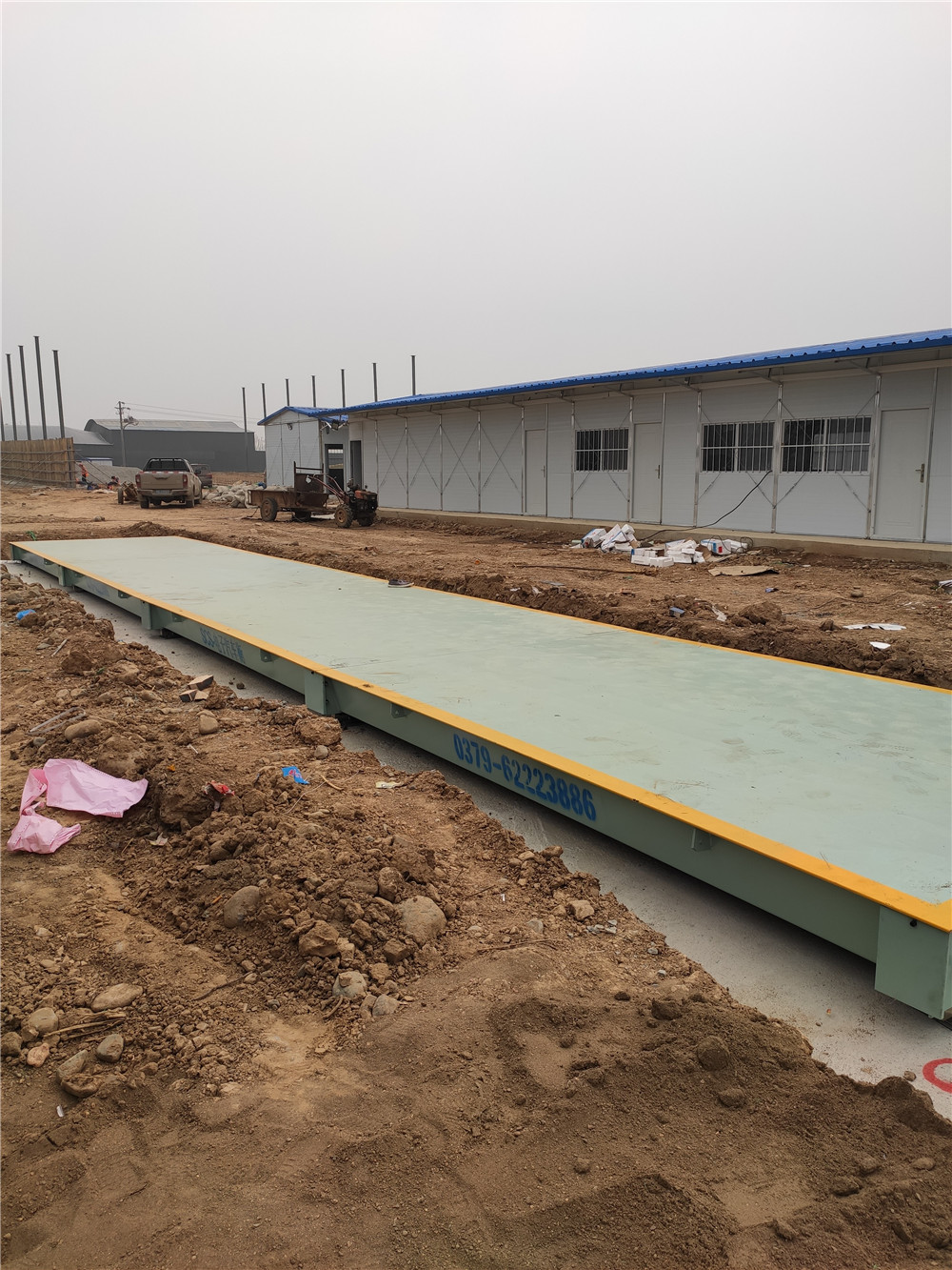 采購背景:中交路建:澠洛高速洛寧拌和站有大量建筑原材料、拌和料進出站需要計量稱重,計劃需要一臺150噸左右的地磅,經拌和站現場考察后,訂購了中原恒瑞地磅廠3mx18m定額150噸電磅,現電子汽車衡已安裝到位并投入使用。