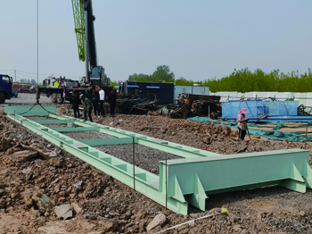 安陽市文峰區(qū)大官莊建材200噸地磅鋼制基礎(chǔ)施工案例